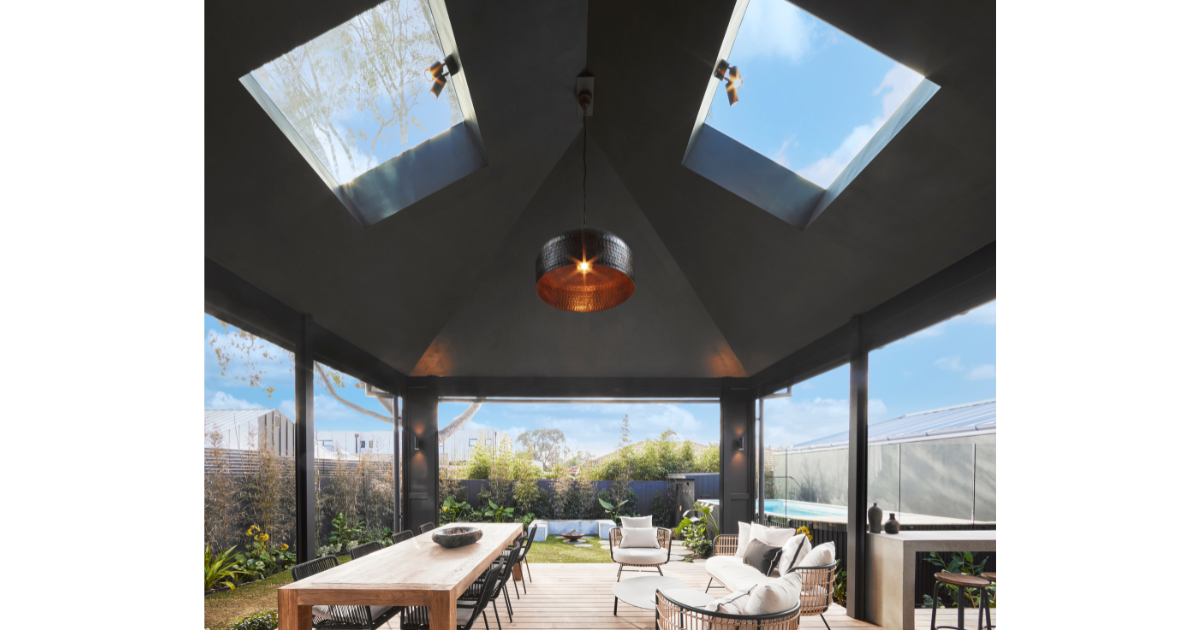This granny flat utilised great spacing of the 4 skylights to also make a feature around the room and take advantage of the nature